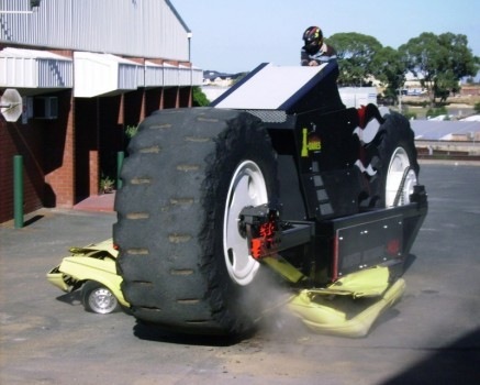 We're not sure if the Monster Motorbike is capable of popping wheelies and monos, but crushing Commodores is an impressive party trick.